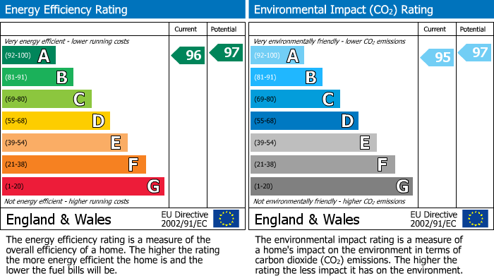 To the side of the property is an attached double car port with power, light and EV charging point. The landscaped rear garden enjoys a southerly aspect and a generous width with a large patio which runs the full width of the property and behind the car barn. The remainder of the garden is laid to lawn and is enclosed by close board fencing.